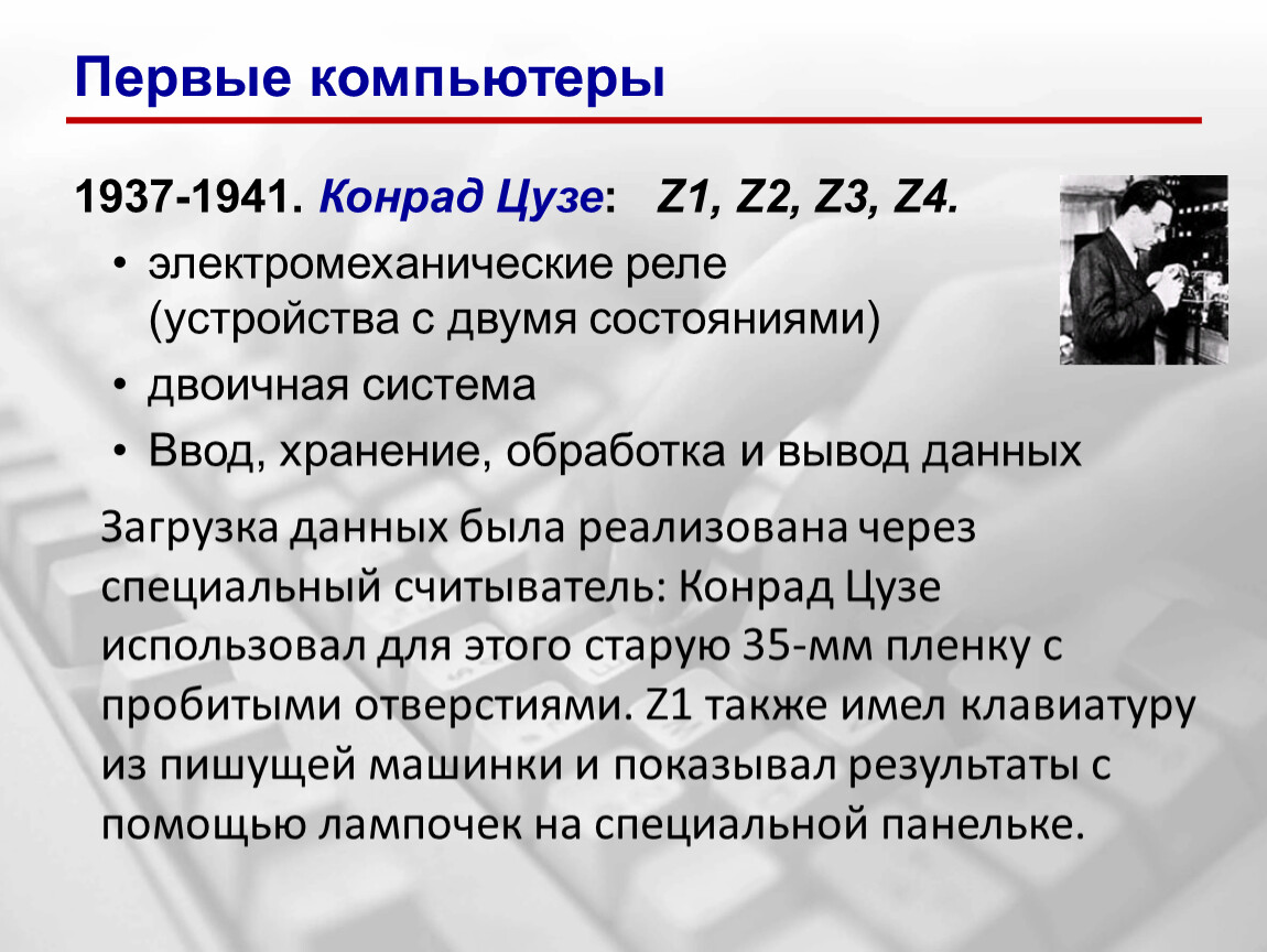 1937-1941. Конрад Цузе: Z1, Z2, Z3, Z4.