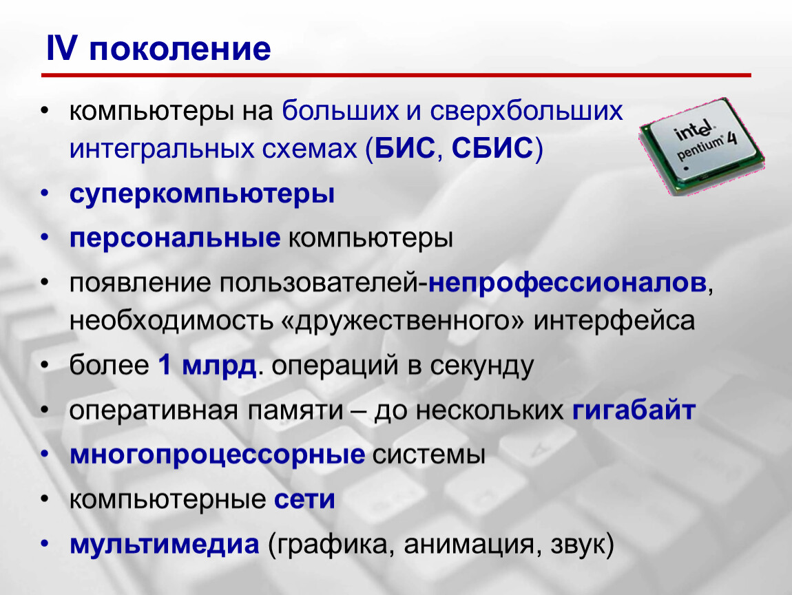 компьютеры на больших и сверхбольшихинтегральных схемах (БИС, СБИС)