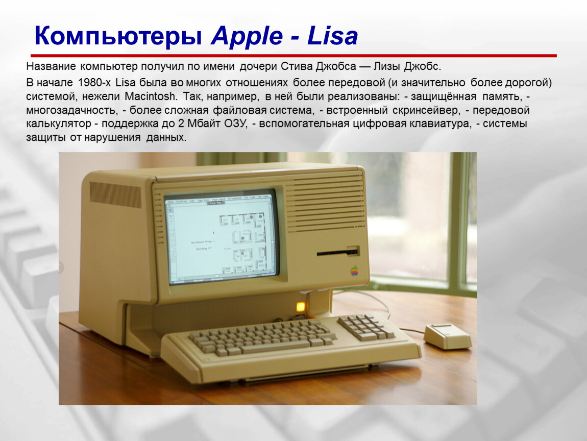 Название компьютер получил по имени дочери Стива Джобса — Лизы Джобс.