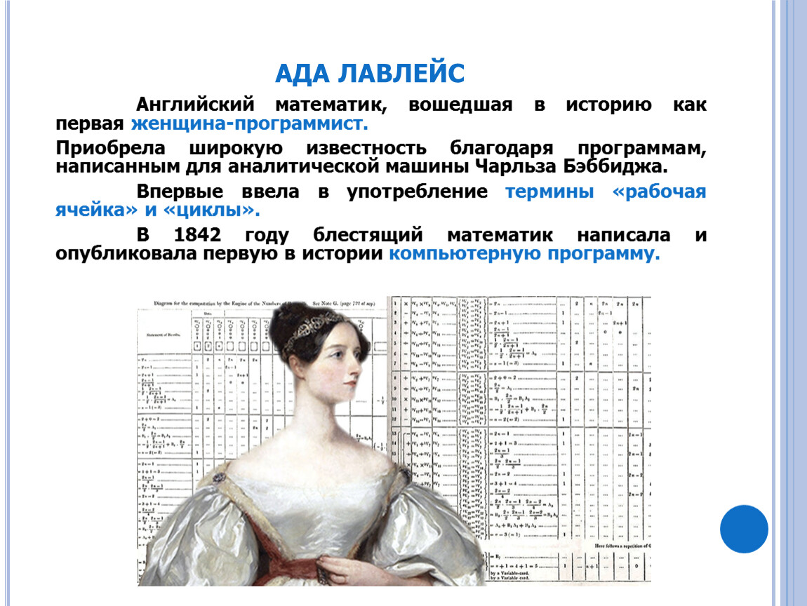 В 1842 году блестящий математик написала и опубликовала первую в истории компьютерную программу.