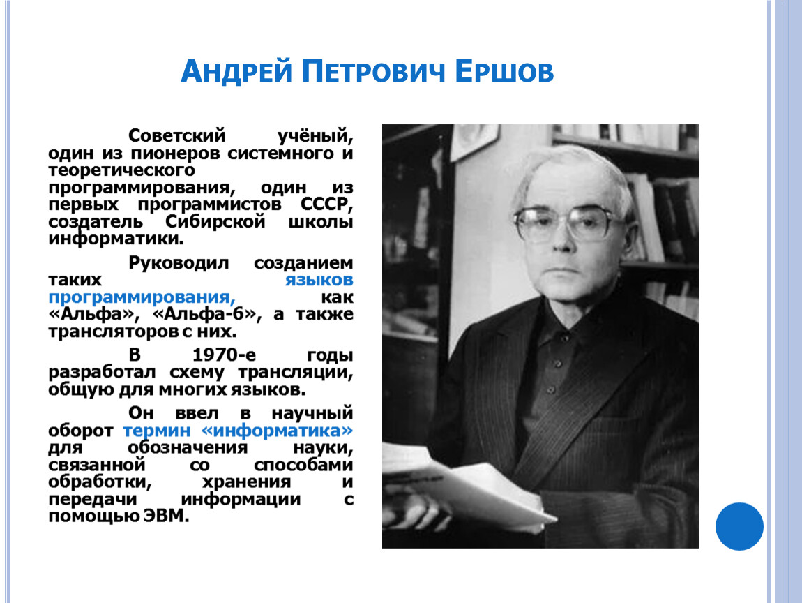 Советский учёный, один из пионеров системного и теоретического программирования, один из первых программистов СССР, создатель Сибирской школы информатики.