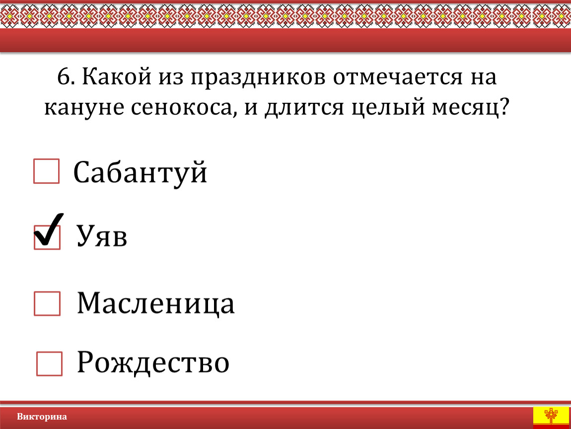 6. Какой из праздников отмечается на кануне сенокоса, и длится целый месяц?
