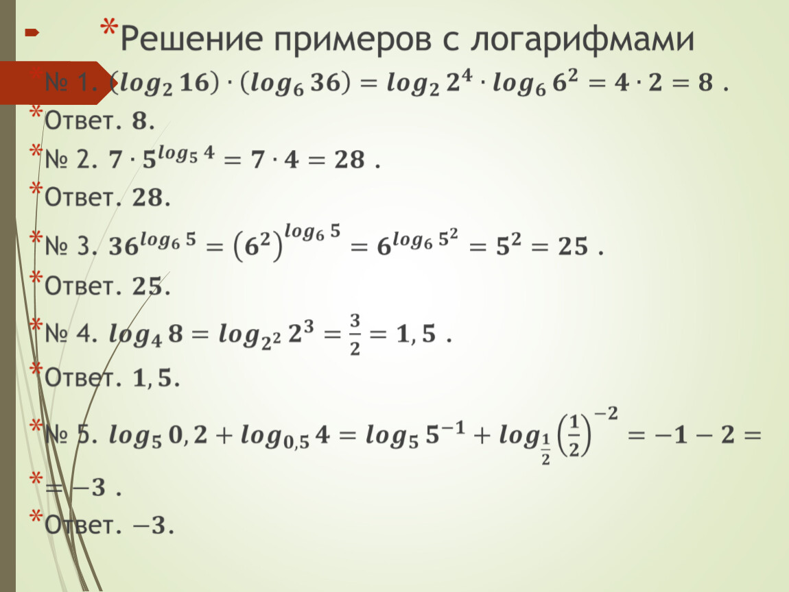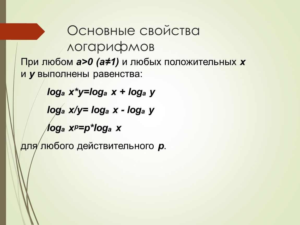 Основные свойства логарифмов