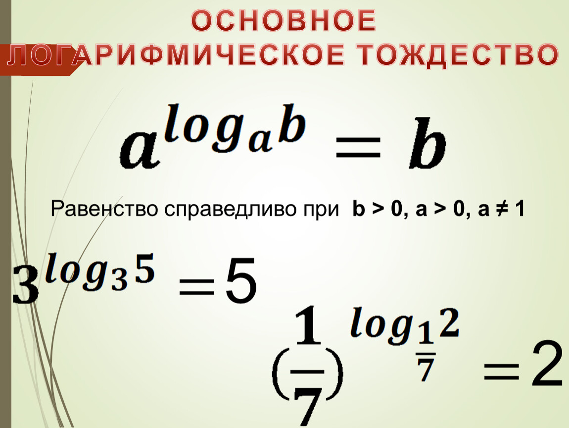 Формулу aˡ ͦ ᵍ ᵇ = b где a≠1, a>0, b>0 называют основным логарифмическим тождеством.