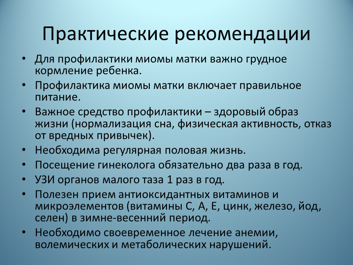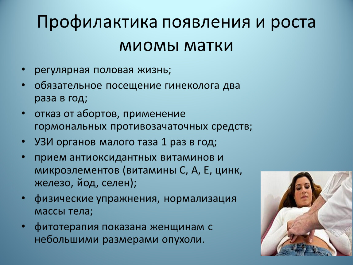 необходимо лечить даже маленькие миомы, не дожидаясь провоцирующих обстоятельств, при которых миома начнет быстро расти.