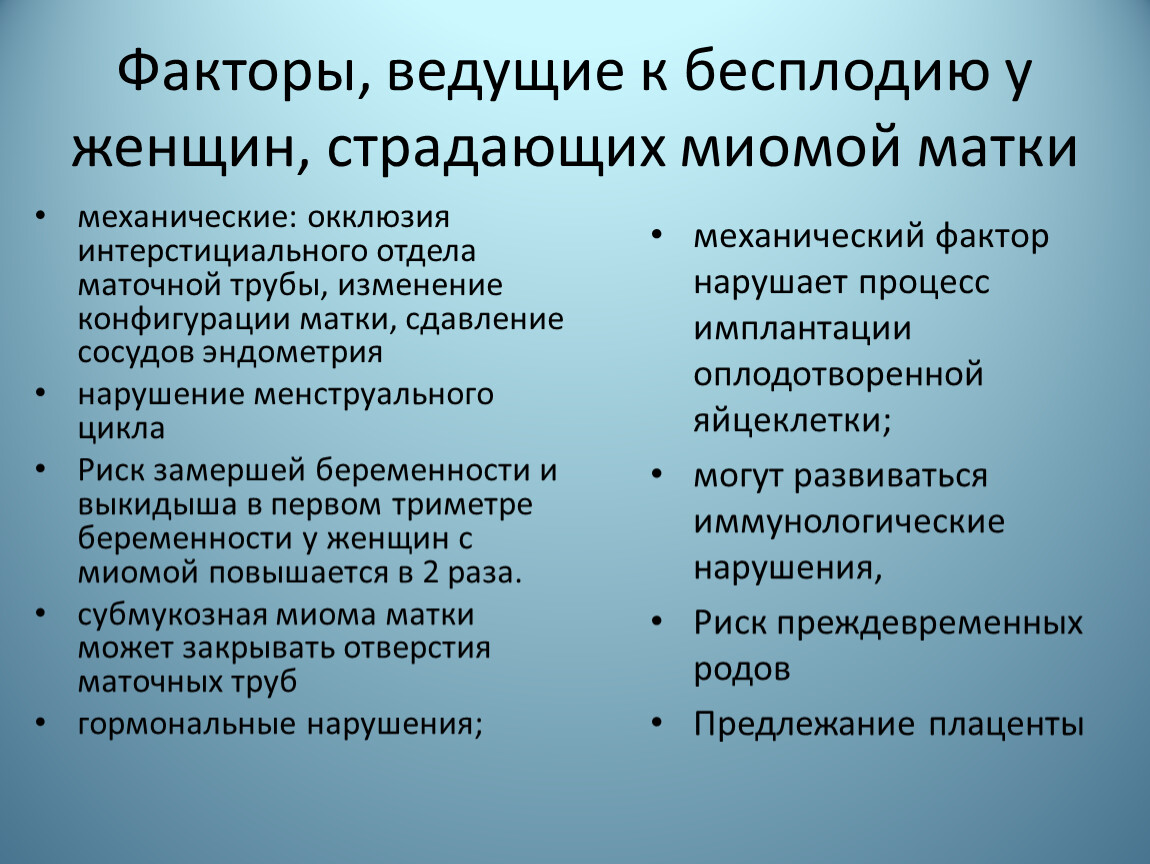 Факторы, ведущие к бесплодию у женщин, страдающих миомой матки