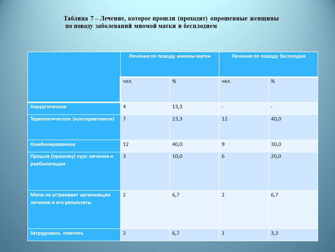 Таблица 7 – Лечение, которое прошли (проходят) опрошенные женщины