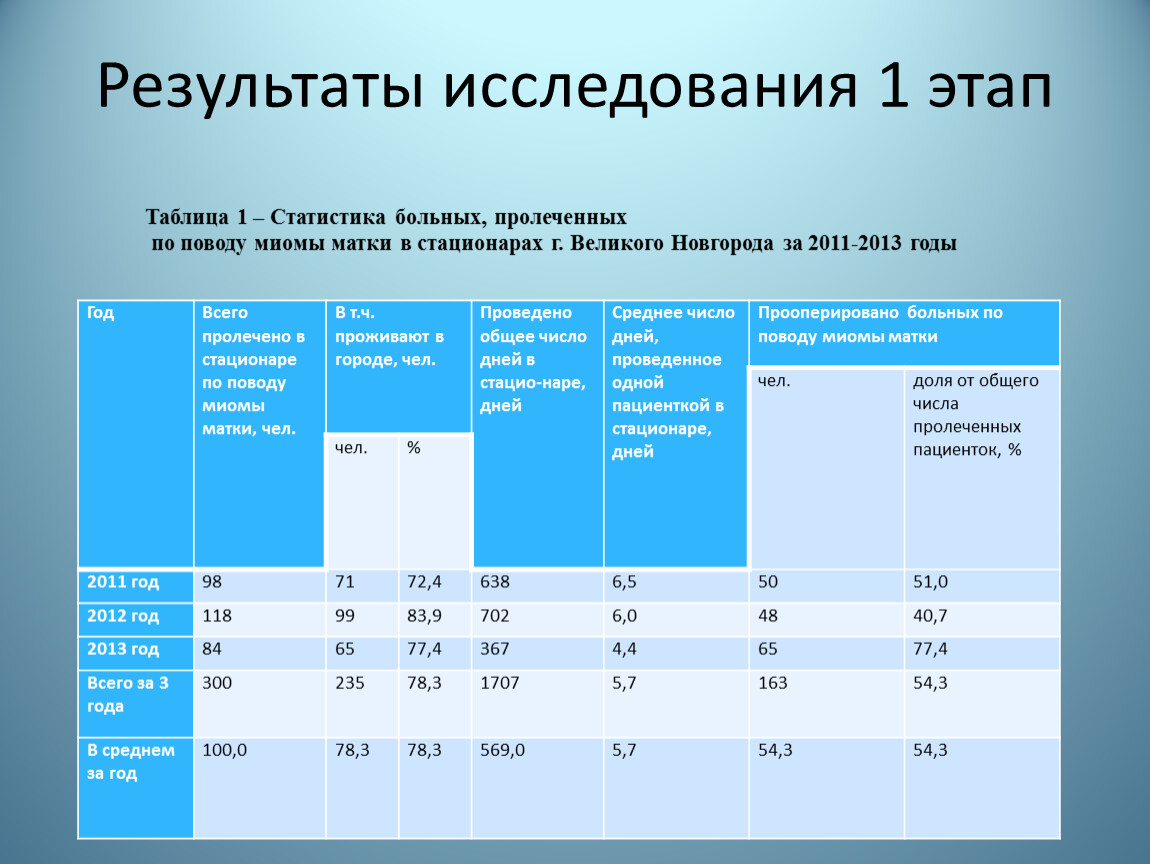 1 этап: Анализ данных о заболеваемости миомой матки по городу Великому Новгороду за 2011-2013 год
