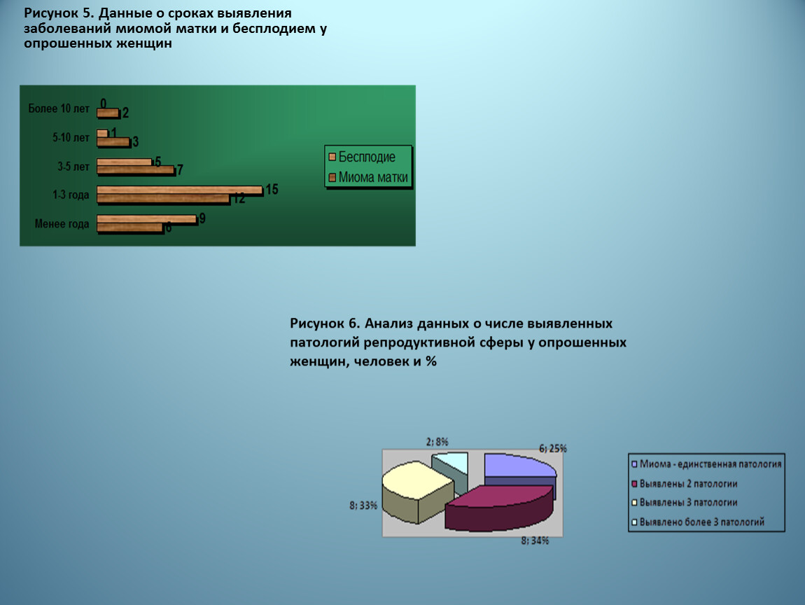 Рисунок 5. Данные о сроках выявления заболеваний миомой матки и бесплодием у опрошенных женщин