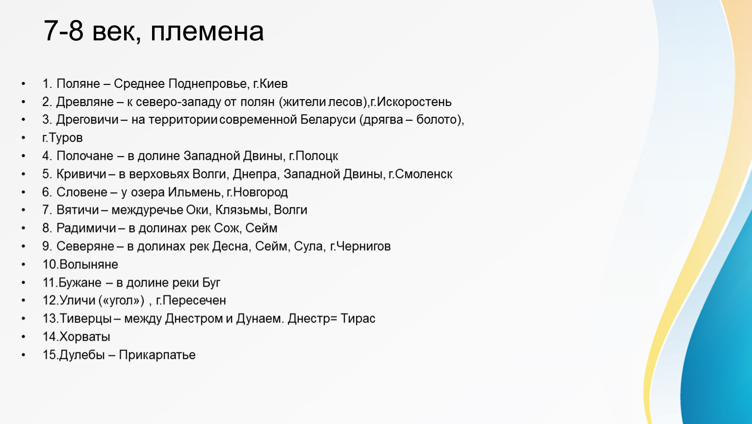 5. Кривичи – в верховьях Волги, Днепра, Западной Двины, г.Смоленск
