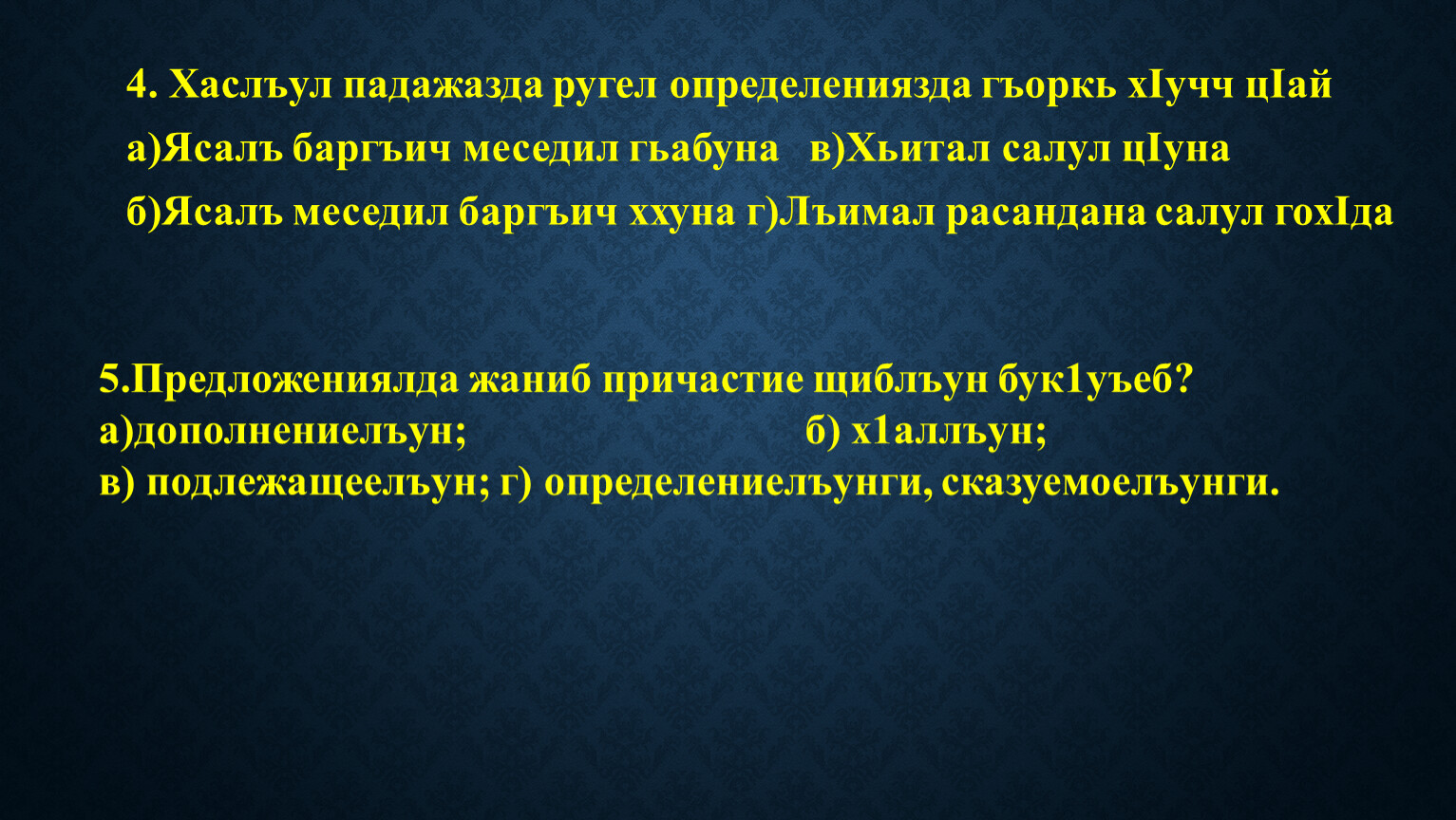 4. Хаслъул падажазда ругел определениязда гъоркь хIучч цIай