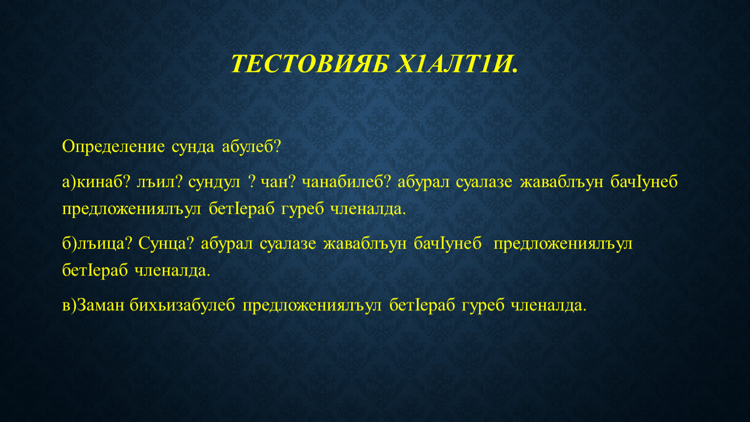 а)кинаб? лъил? сундул ? чан? чанабилеб? абурал суалазе жаваблъун бачIунеб предложениялъул бетIераб гуреб членалда.