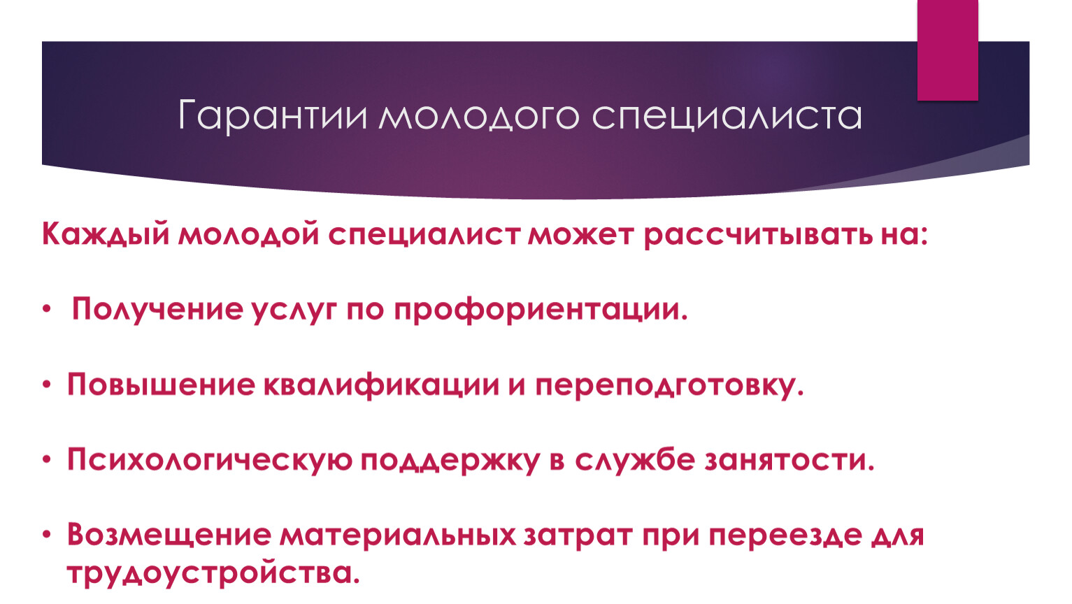 Гарантии молодого специалиста