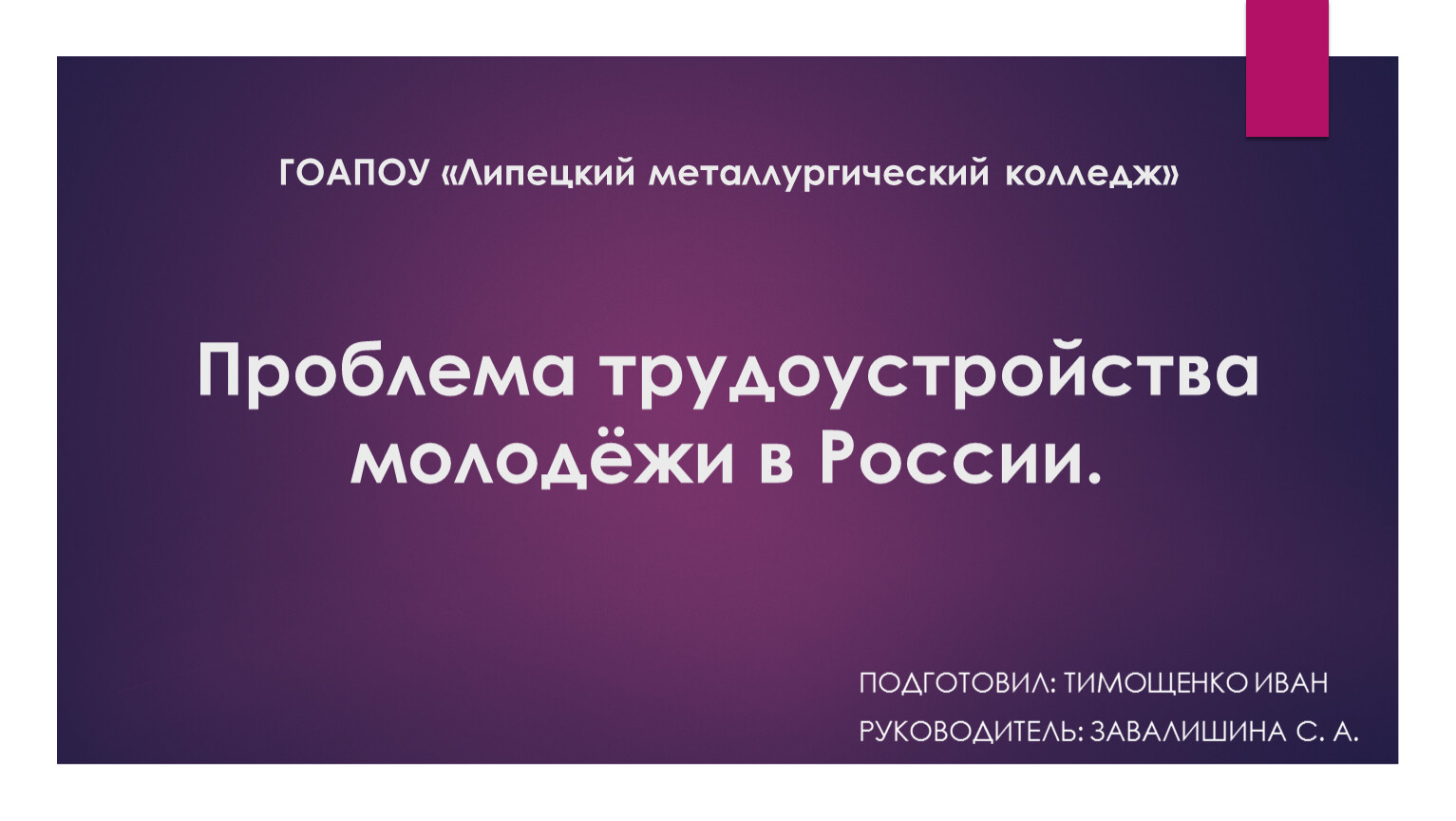 ГОАПОУ «Липецкий металлургический колледж»Проблема трудоустройства молодёжи в России.