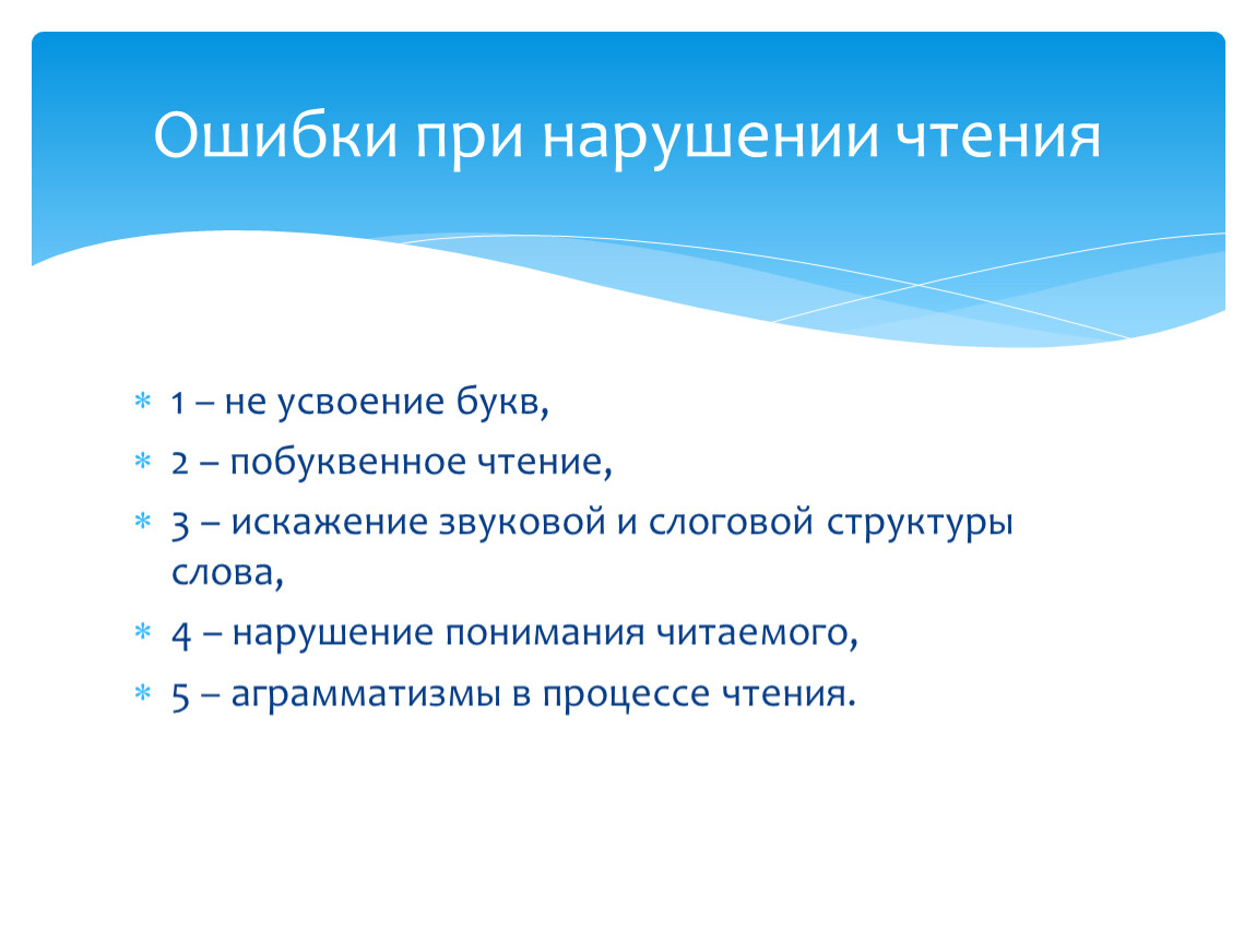 Ошибки при нарушении чтения