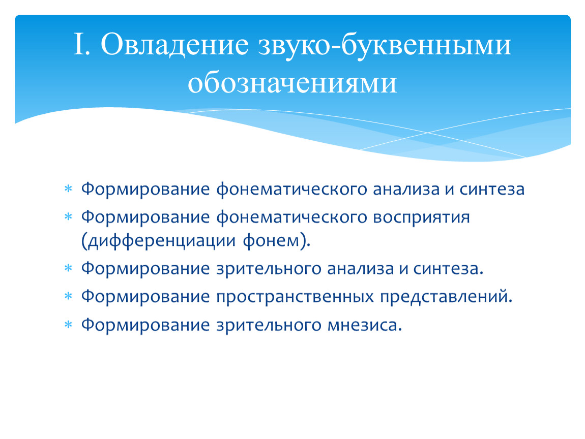 I. Овладение звуко-буквенными обозначениями