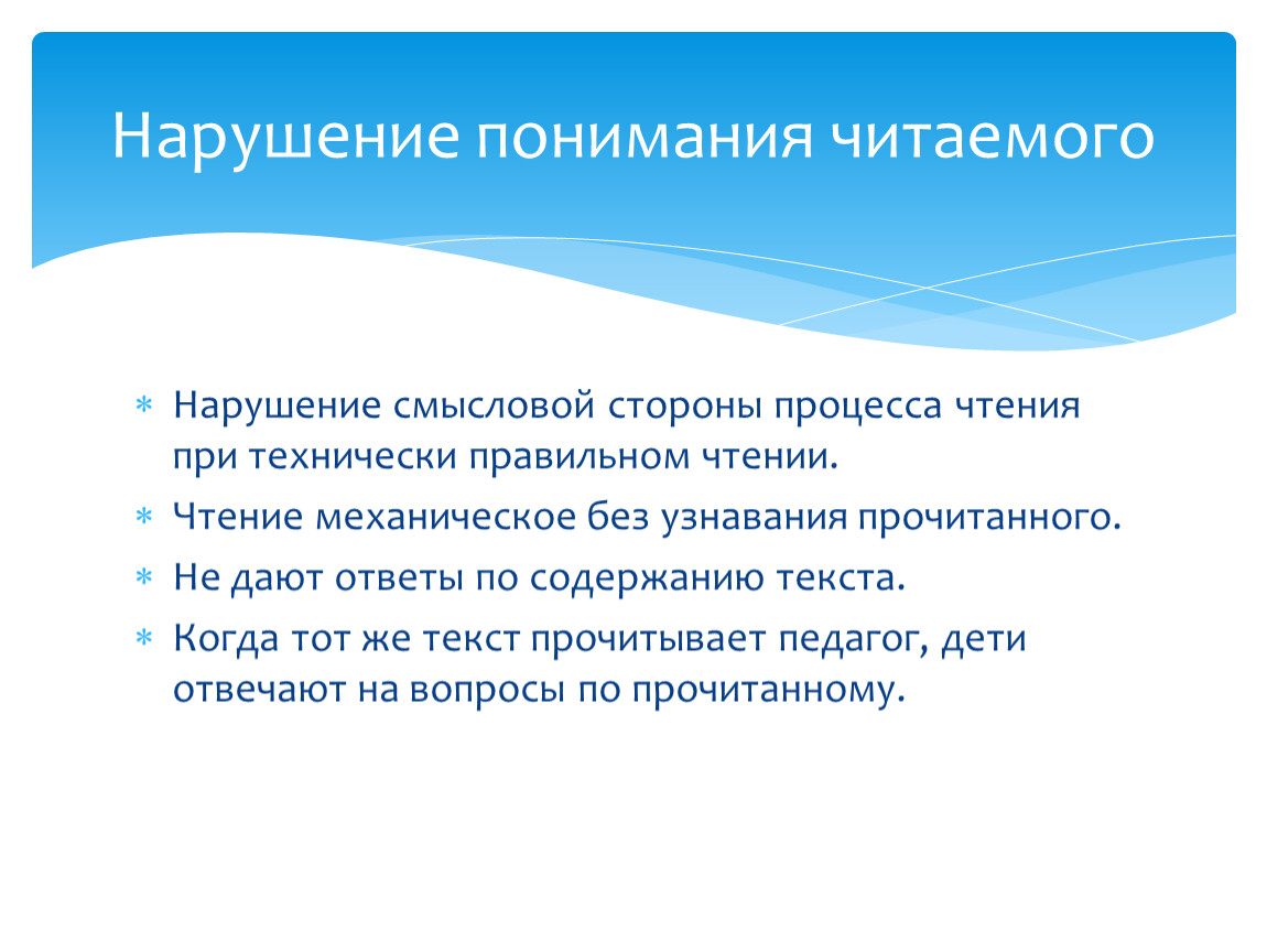 4 – нарушение понимания читаемого,