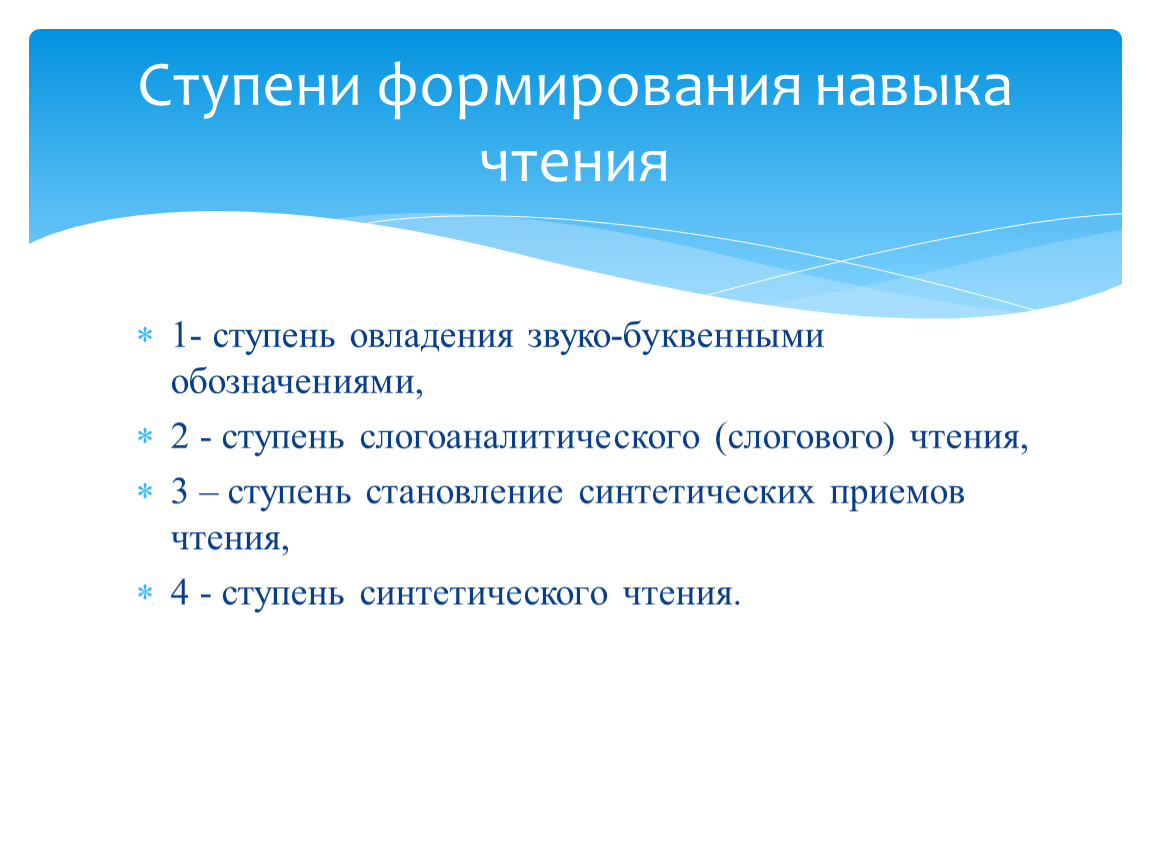 Ступени формирования навыка чтения