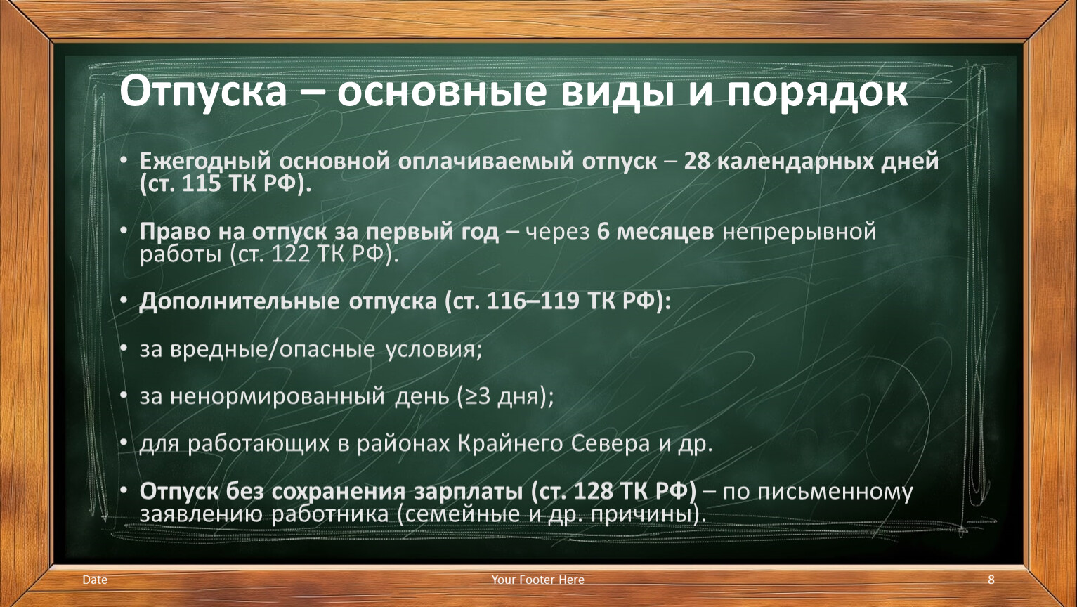 Дополнительные отпуска (ст. 116–119 ТК РФ):