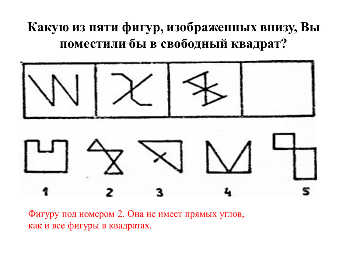 Какую из пяти фигур, изображенных внизу, Вы поместили бы в свободный квадрат?