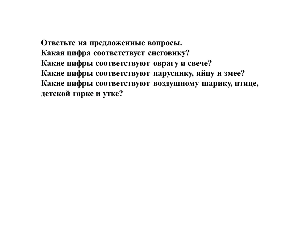 Какие цифры соответствуют воздушному шарику, птице, детской горке и утке?