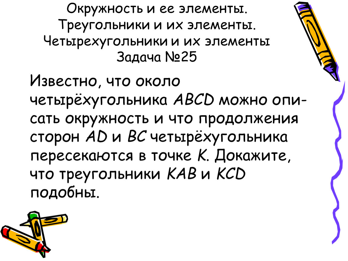 Окружность и ее элементы. Треугольники и их элементы. Четырехугольники и их элементы Задача №25