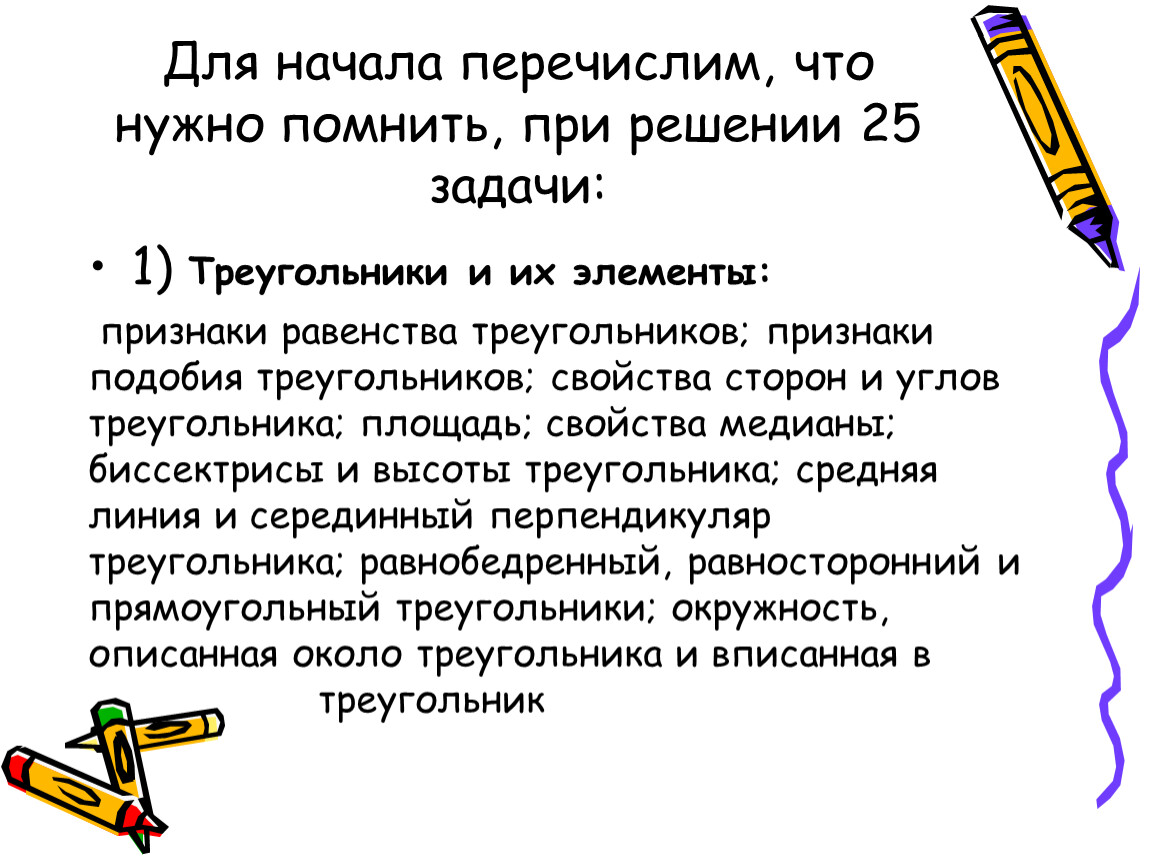 Для начала перечислим, что нужно помнить, при решении 25 задачи: