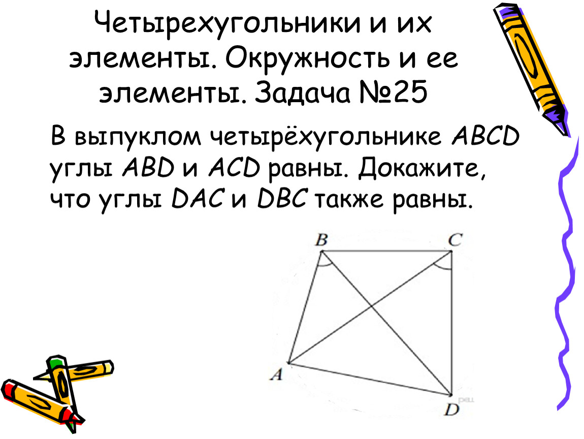 Четырехугольники и их элементы. Окружность и ее элементы. Задача №25
