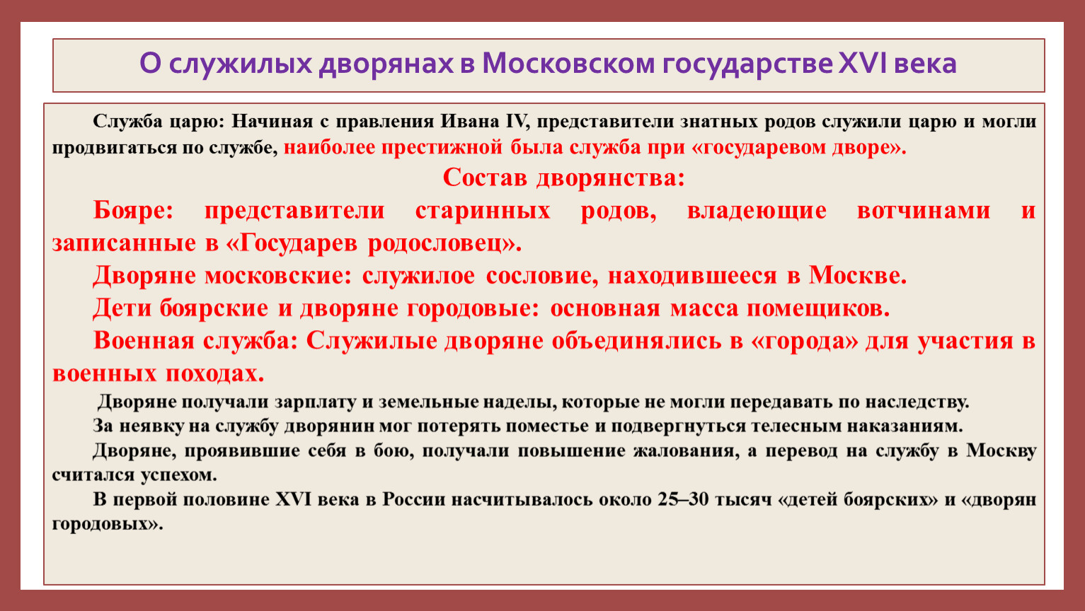 В первой половине XVI века в России насчитывалось около 25–30 тысяч «детей боярских» и «дворян городовых».
