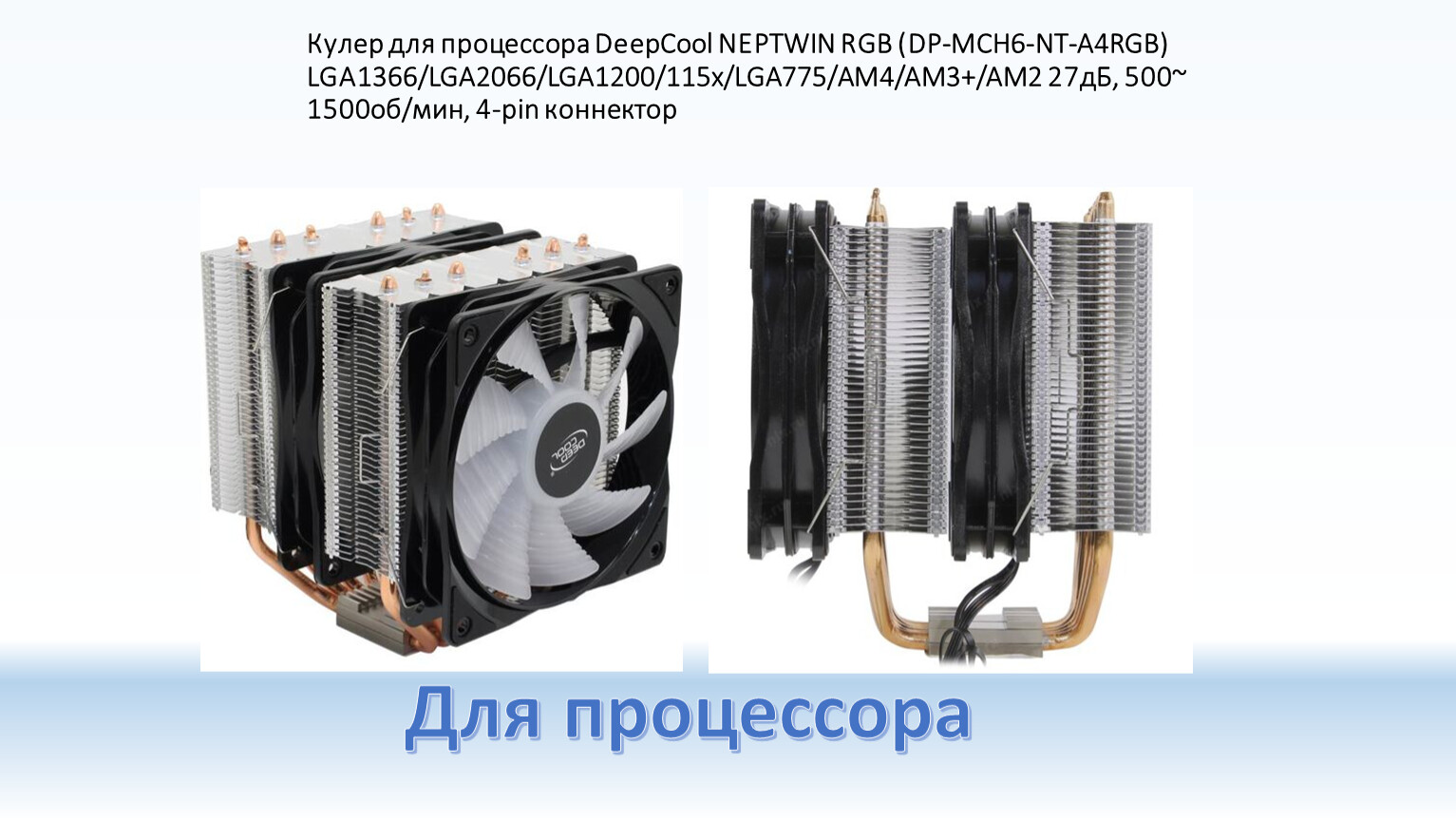 Кулер для процессора DeepCool NEPTWIN RGB (DP-MCH6-NT-A4RGB) LGA1366/LGA2066/LGA1200/115x/LGA775/AM4/AM3+/AM2 27дБ, 500~ 1500об/мин, 4-pin коннектор