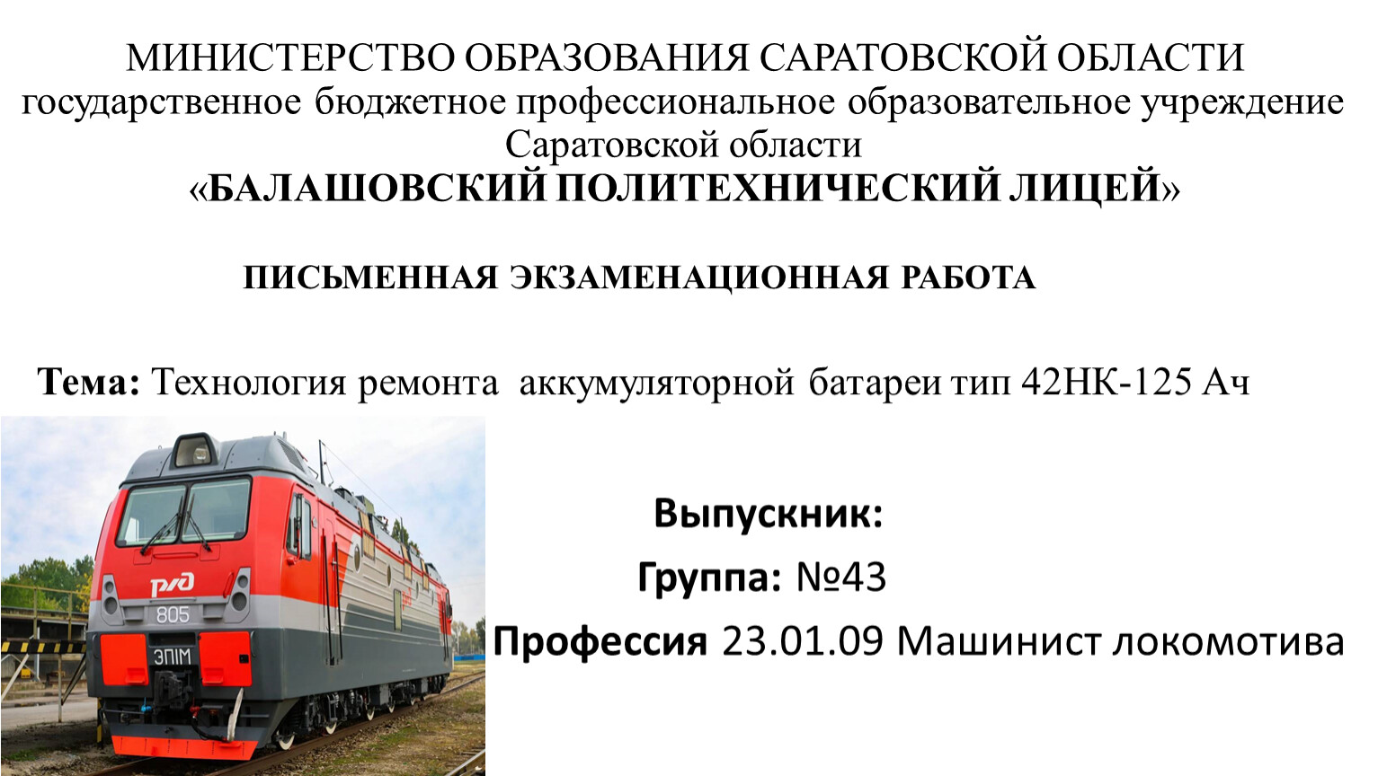 МИНИСТЕРСТВО ОБРАЗОВАНИЯ САРАТОВСКОЙ ОБЛАСТИ государственное бюджетное профессиональное образовательное учреждение Саратовской области «БАЛАШОВСКИЙ ПОЛИТЕХНИЧЕСКИЙ ЛИЦЕЙ»