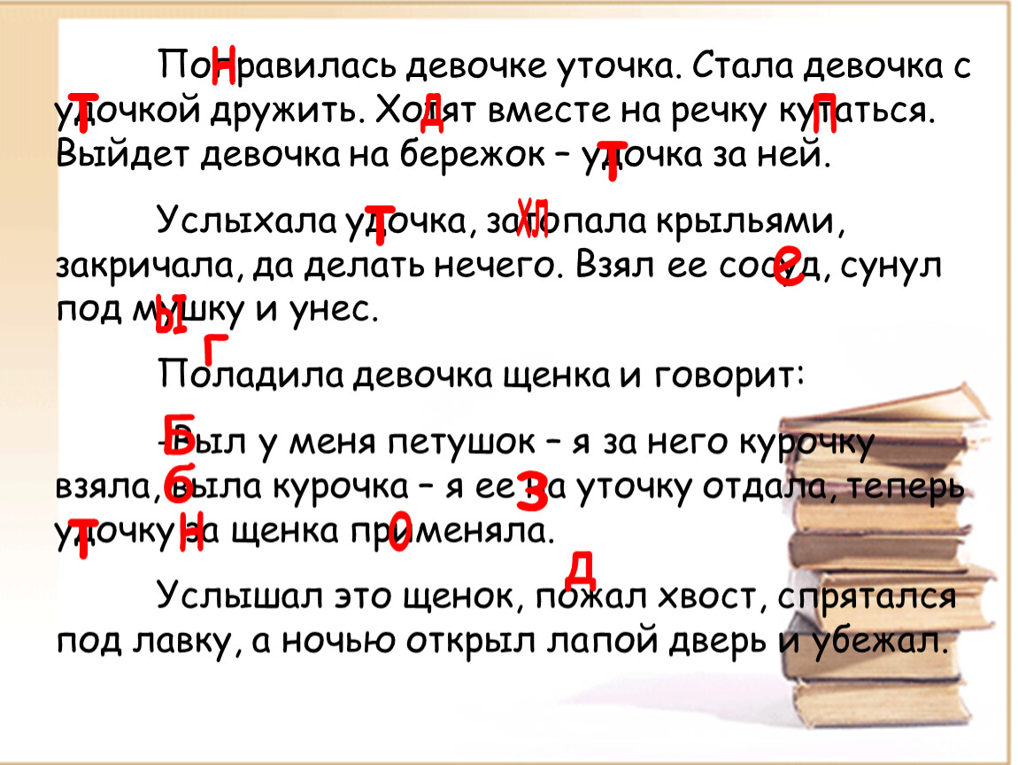 -Выл у меня петушок – я за него курочку взяла, выла курочка – я ее на уточку отдала, теперь удочку за щенка применяла.