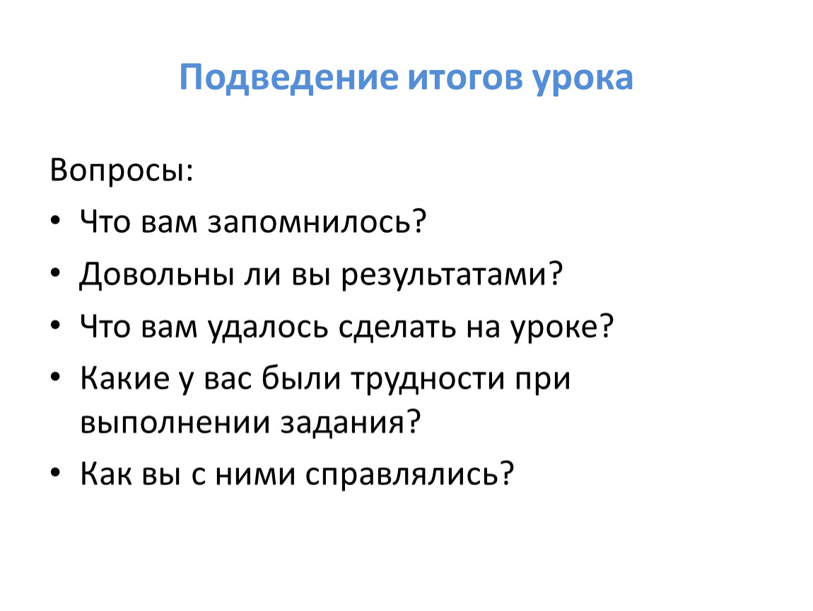 Подведение итогов урока