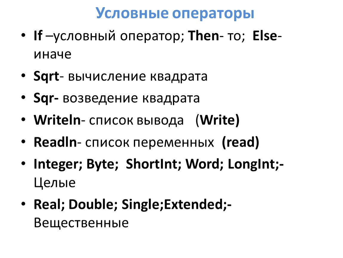 If –условный оператор; Then- то; Еlse- иначе