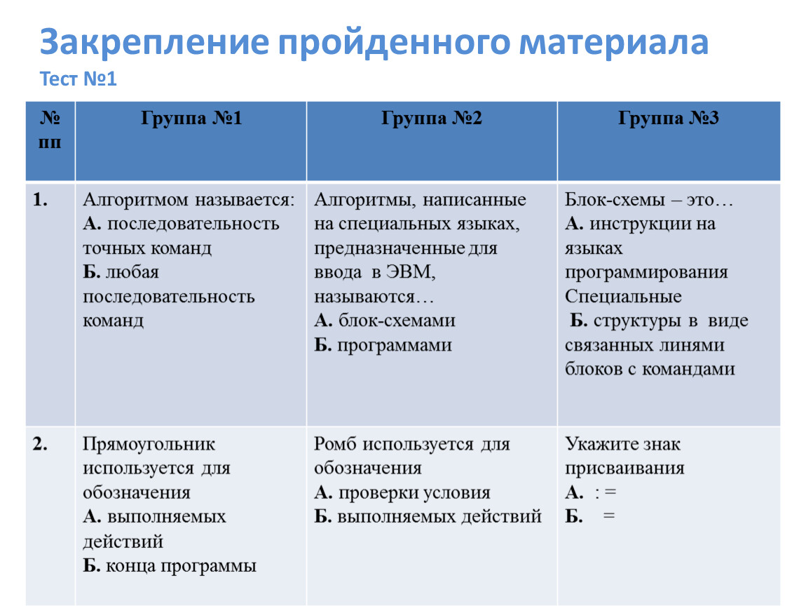 Закрепление пройденного материалаТест №1