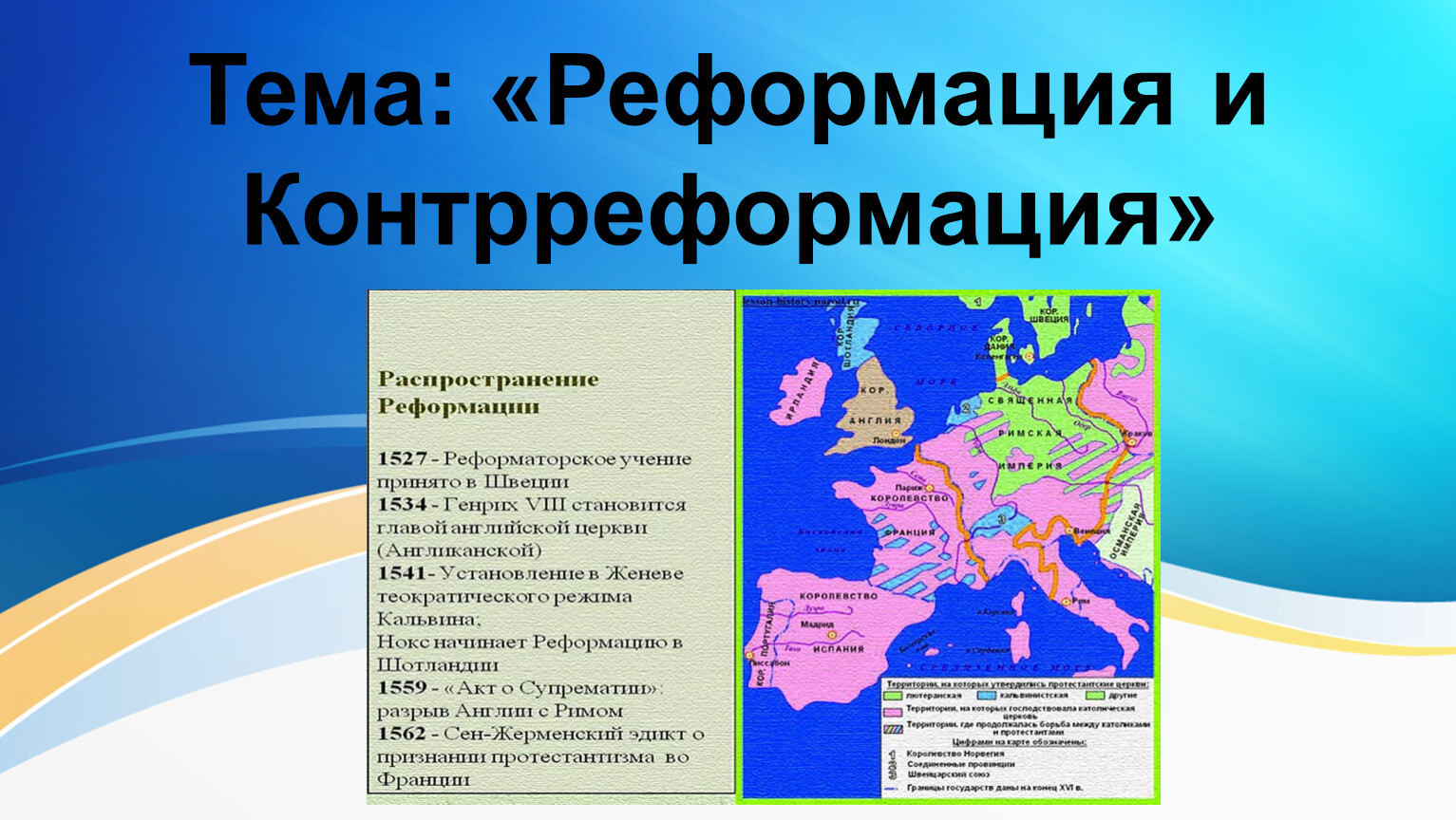 Термины: Контрреформация, протестантизм, кальвинизм, иезуиты.