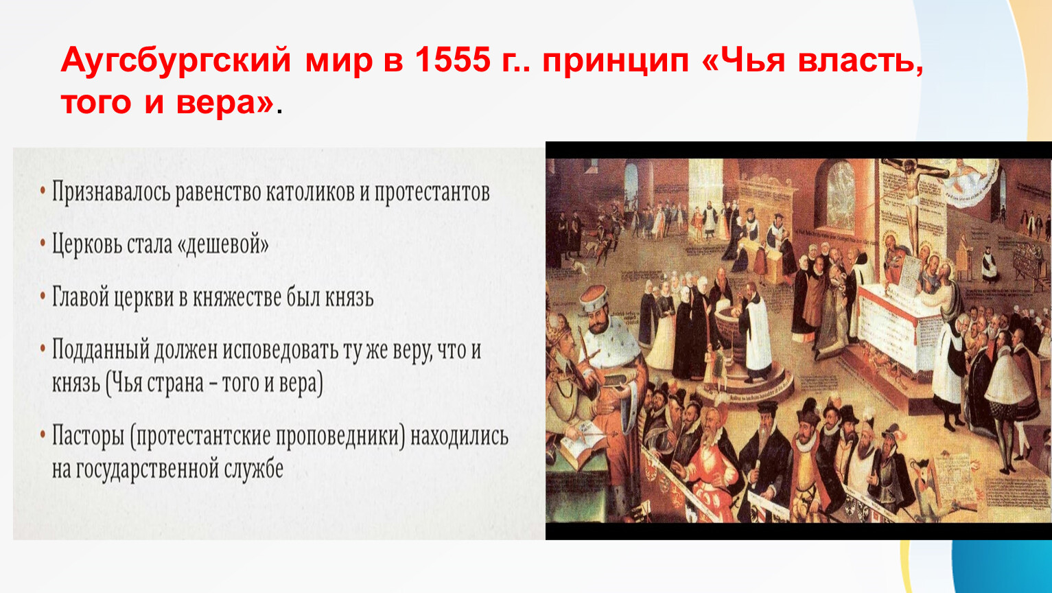 Сторонников Реформации стали называть протестантами, а их веру — протестантизмом.