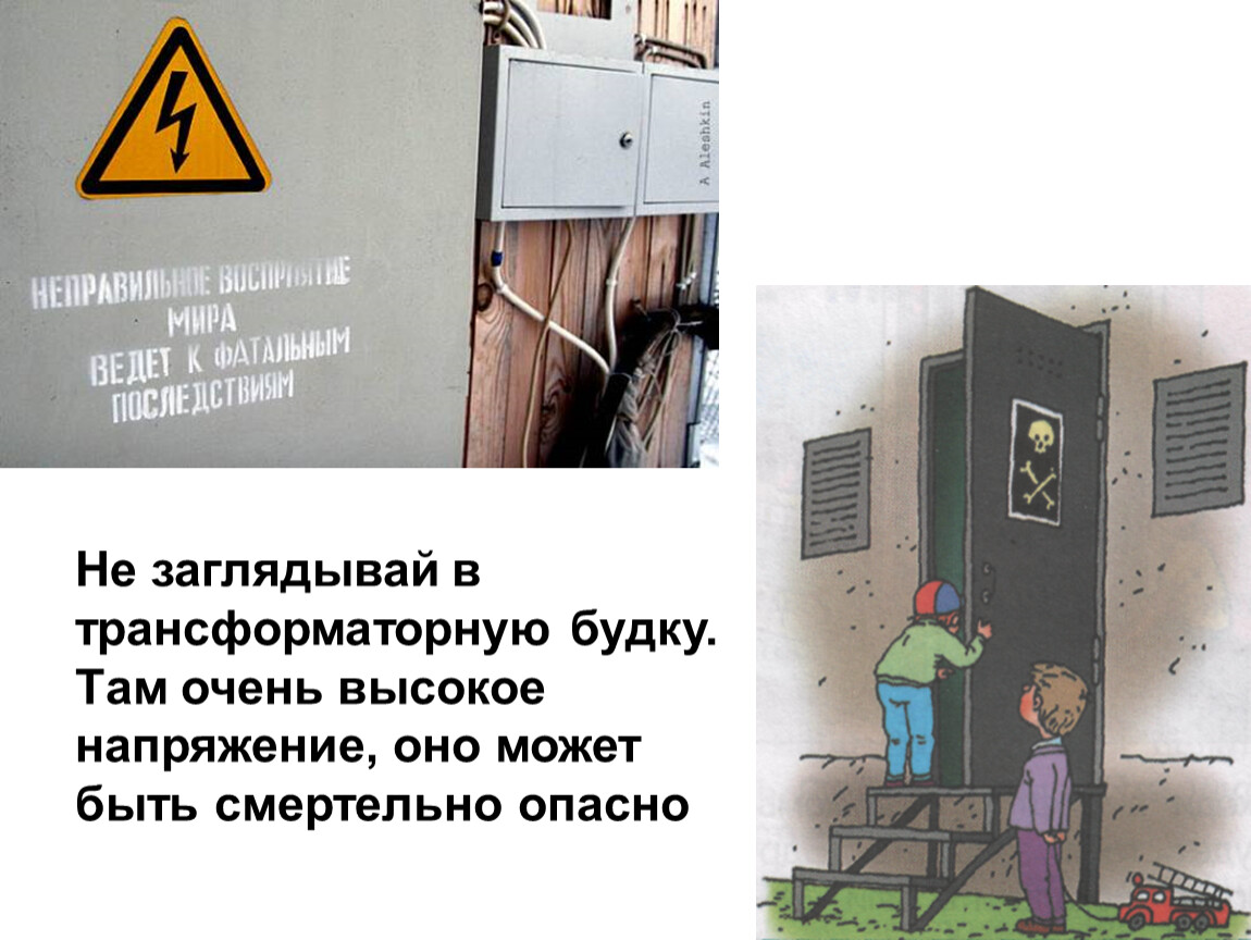 Не заглядывай в трансформаторную будку. Там очень высокое напряжение, оно может быть смертельно опасно