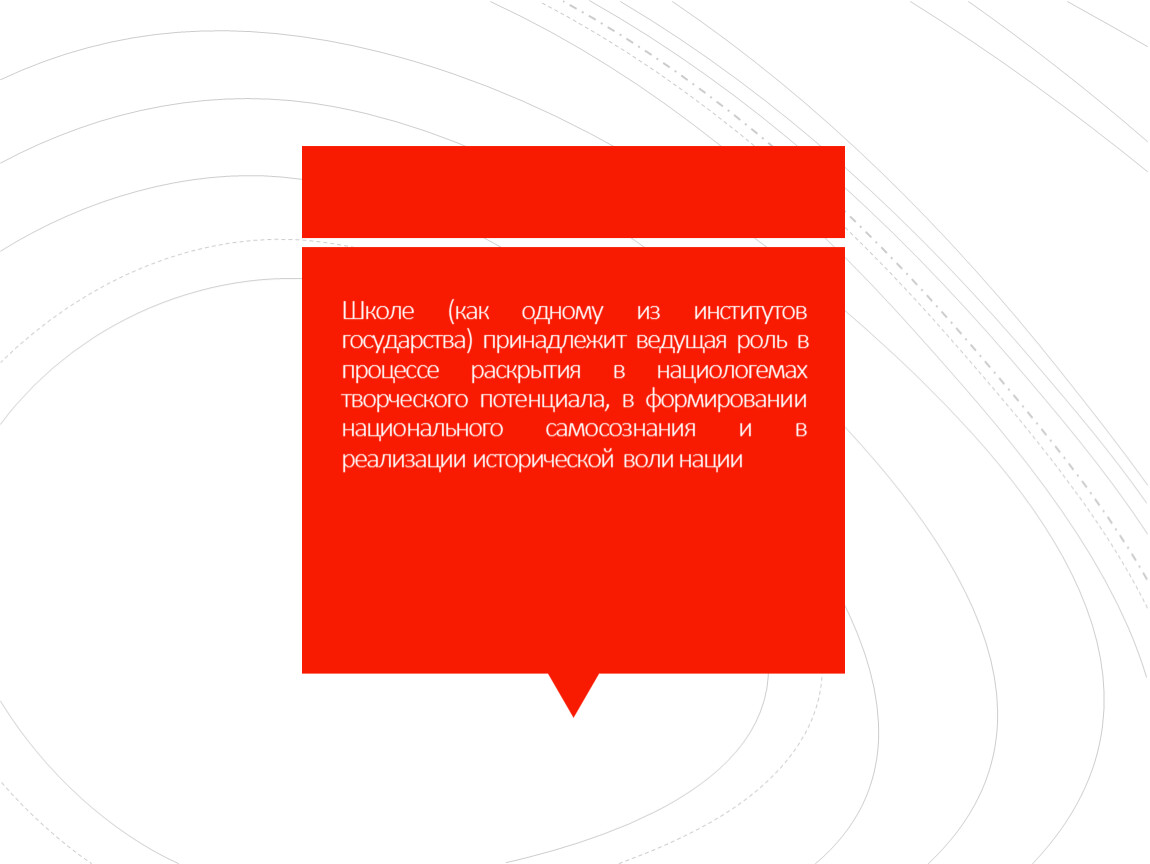 Школе (как одному из институтов государства) принадлежит ведущая роль в процессе раскрытия в нациологемах творческого потенциала, в формировании национального самосознания и в реализации исторической воли нации