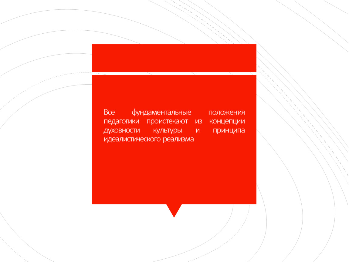 Все фундаментальные положения педагогики проистекают из концепции духовности культуры и принципа идеалистического реализма
