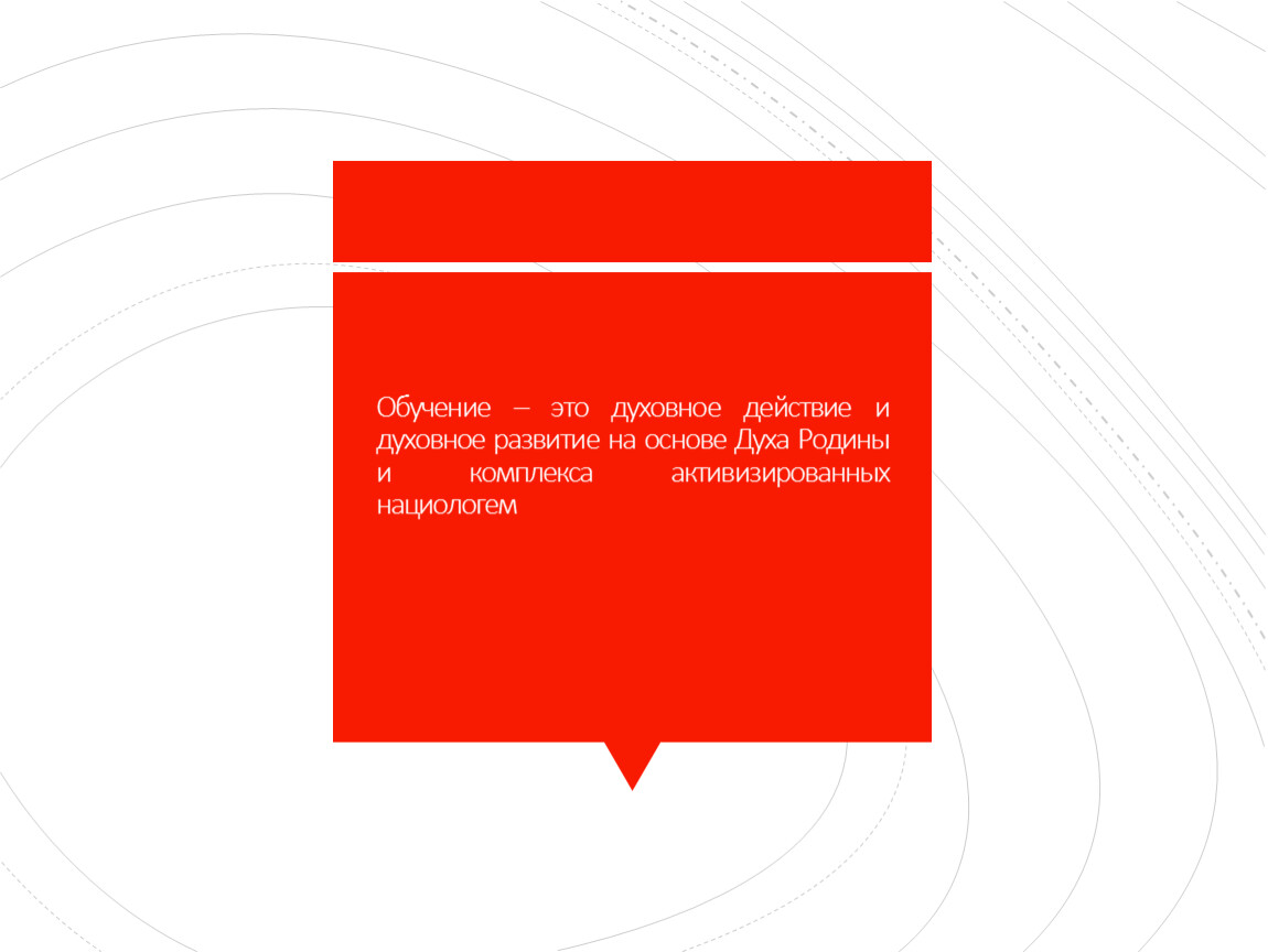 Обучение – это духовное действие и духовное развитие на основе Духа Родины и комплекса активизированных нациологем