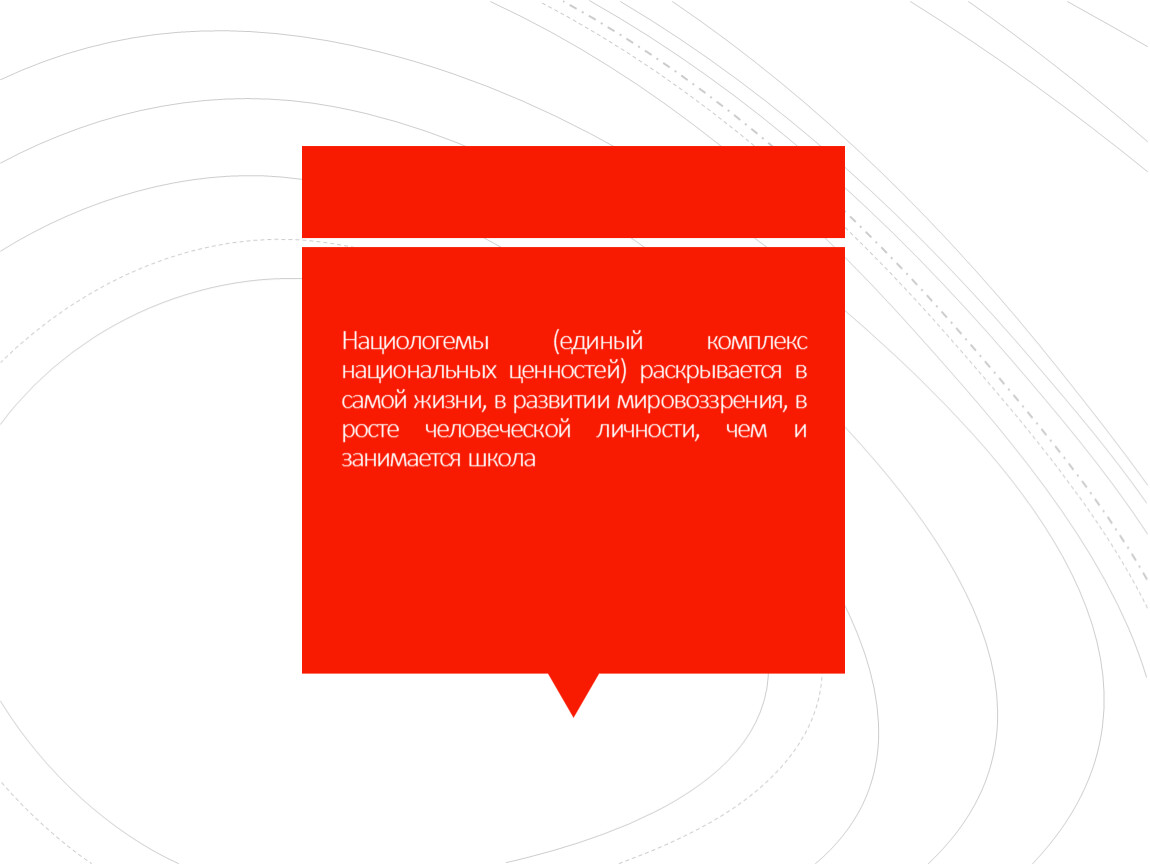 Нациологемы (единый комплекс национальных ценностей) раскрывается в самой жизни, в развитии мировоззрения, в росте человеческой личности, чем и занимается школа