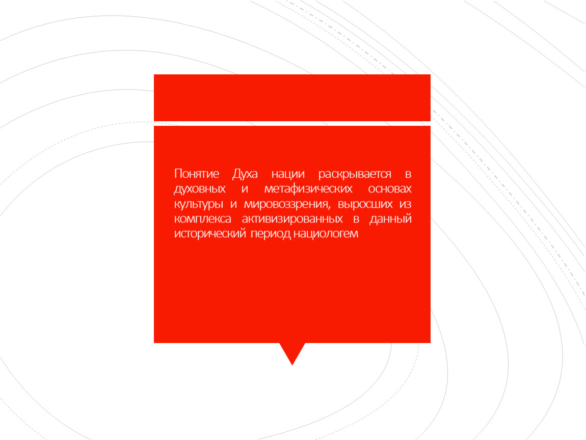 Понятие Духа нации раскрывается в духовных и метафизических основах культуры и мировоззрения, выросших из комплекса активизированных в данный исторический период нациологем