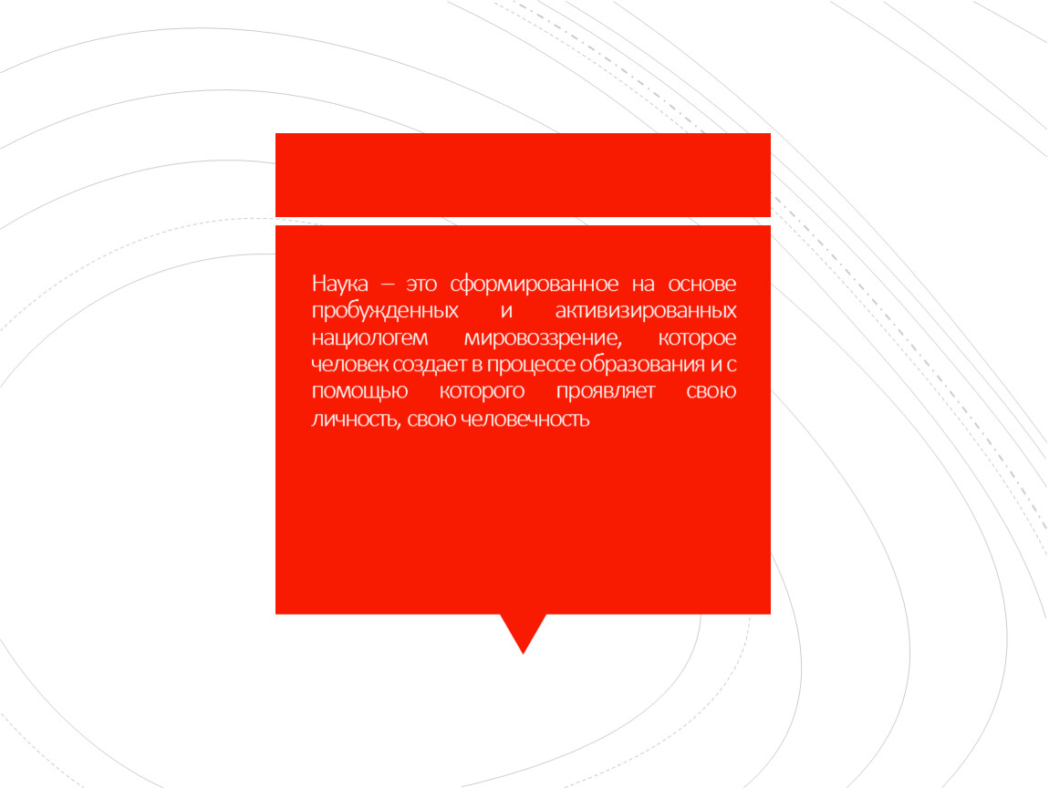 Наука – это сформированное на основе пробужденных и активизированных нациологем мировоззрение, которое человек создает в процессе образования и с помощью которого проявляет свою личность, свою человечность