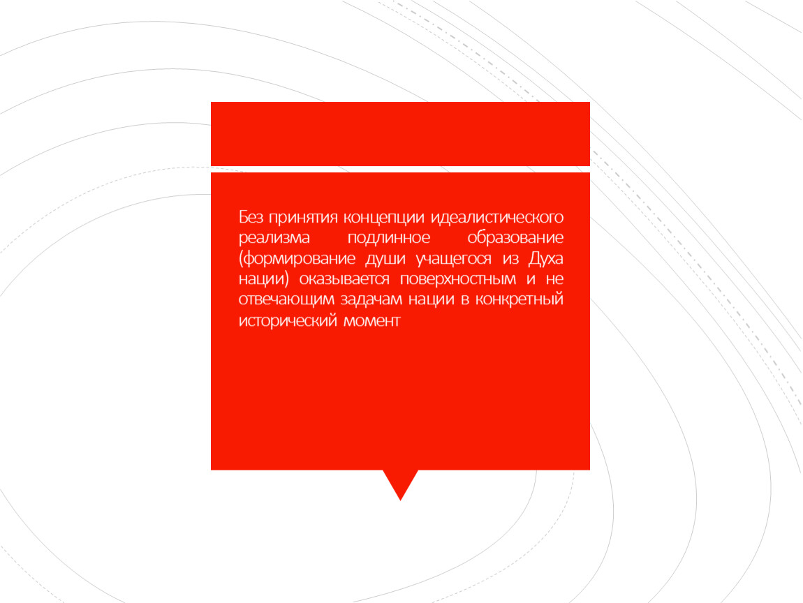 Без принятия концепции идеалистического реализма подлинное образование (формирование души учащегося из Духа нации) оказывается поверхностным и не отвечающим задачам нации в конкретный исторический момент