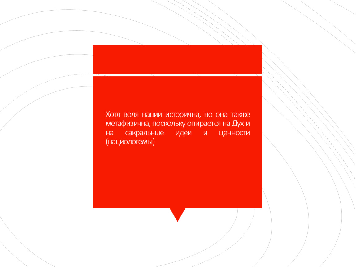 Хотя воля нации исторична, но она также метафизична, поскольку опирается на Дух и на сакральные идеи и ценности (нациологемы)