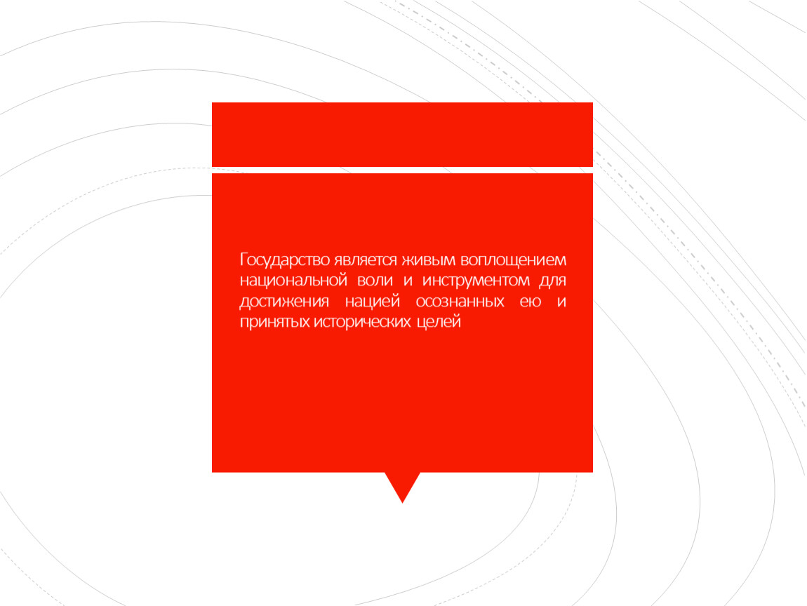 Государство является живым воплощением национальной воли и инструментом для достижения нацией осознанных ею и принятых исторических целей