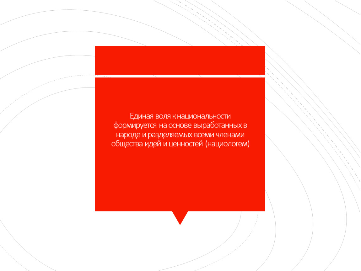 Единая воля к национальности формируется на основе выработанных в народе и разделяемых всеми членами общества идей и ценностей (нациологем)