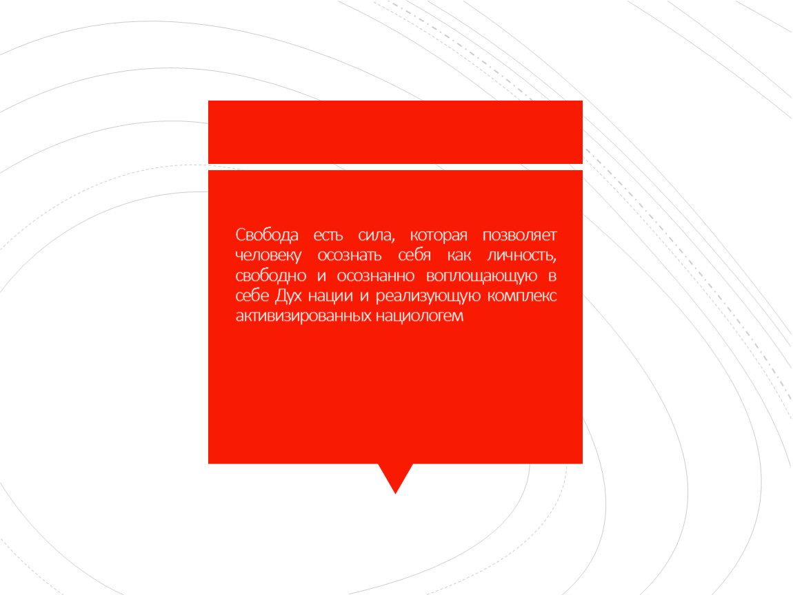 Свобода есть сила, которая позволяет человеку осознать себя как личность, свободно и осознанно воплощающую в себе Дух нации и реализующую комплекс активизированных нациологем