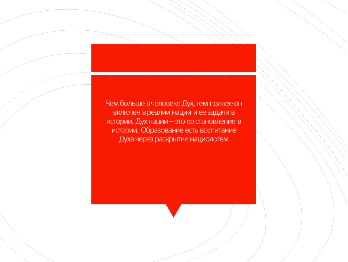 Чем больше в человеке Дух, тем полнее он включен в реалии нации и ее задачи в истории. Дух нации – это ее становление в истории. Образование есть воспитание Духа через раскрытие нациологем